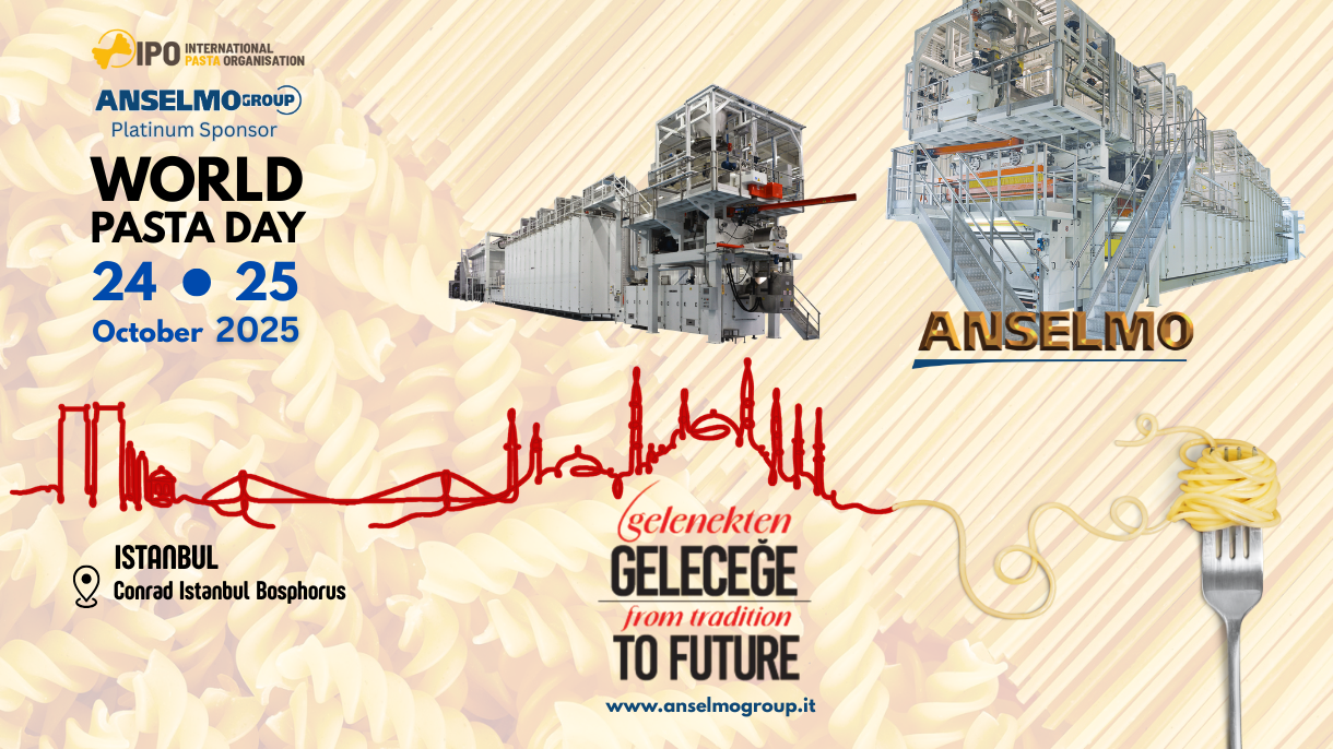 From October 24 to 26, 2025, the ANSELMO Group will participate as a Platinum Sponsor in the World Pasta Day, which this year will take place in Istanbul, a strategic hub in one of the most dynamic and fast-growing countries in the pasta industry.